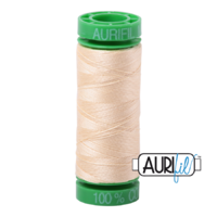 Aurifil’s 100% Cotton 40wt thread is available in all 270 of our Cotton colors and is wound on a green spool. Because of its slightly thicker weight, it is perfect for use with sewing bags, toys or dolls, garments, or when a more defined topstitching or quilting pattern is desired. It is also terrific for Single, Double or Triple Strand Cross Stitch, Hand Piecing, Bobbin and Machine Lace, Machine Applique, Machine Embroidery, Edge-to-Edge, Pantographs, and Custom Longarm Quilting.